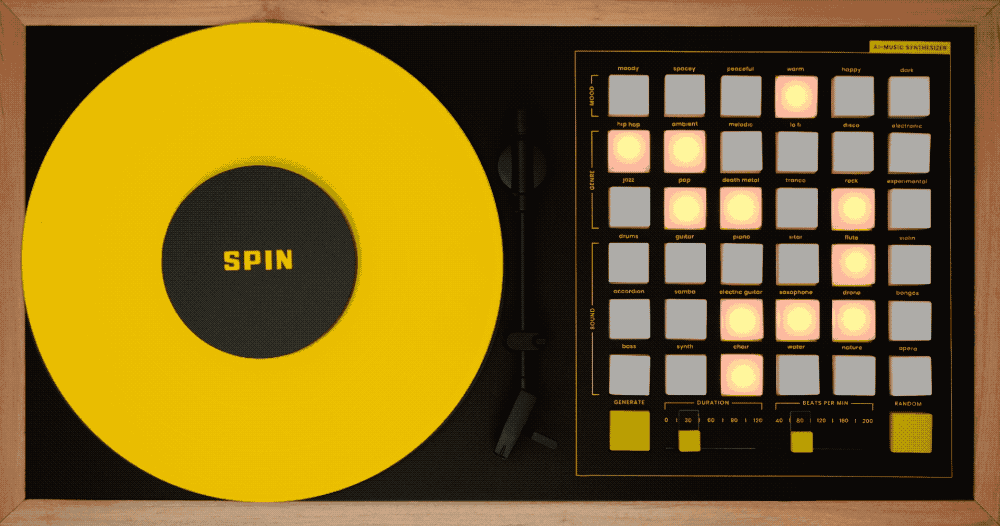 SPIN сочетает в себе проигрыватель виниловых пластинок и драм-машину. В его основе — два основных компонента: Raspberry Pi 4 Model B и микропроцессоры Arduino Mega 2560. Они облегчают взаимодействие между вводом информации пользователем и музыкой, которую создает ИИ. Композиции можно создавать в реальном времени.