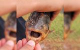 Мальчик поймал рыбу с «человеческими» зубами недалеко от дома. Она похожа на пиранью