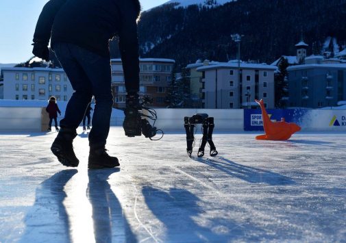 Посмотрите, как четвероногий робот учится кататься на коньках. И не падает!