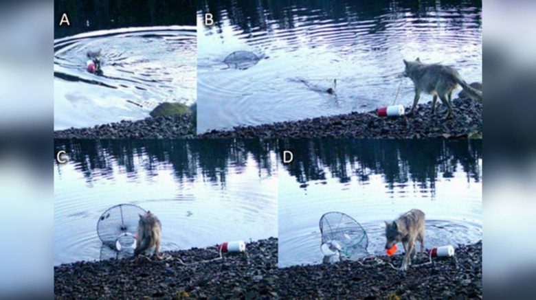 Посмотрите, как дикая волчица сама научилась использовать ловушки для добычи пищи