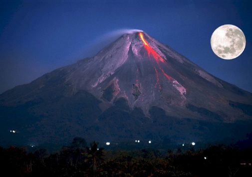 Посмотрите на извержение самого активного вулкана Индонезии