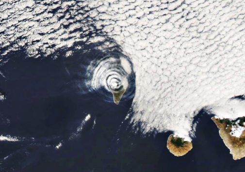 НАСА показало облака странной формы над извергающимся вулканом